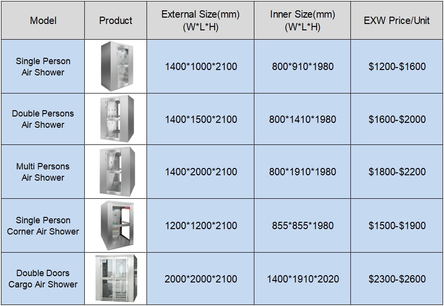 Partical Air Shower Price List